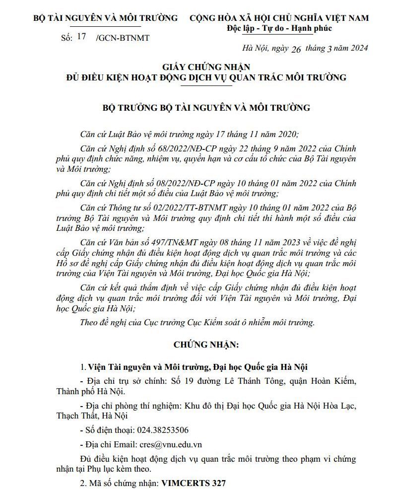 NĂNG LỰC PHÒNG CÔNG NGHỆ XANH VÀ PHÂN TÍCH MÔI TRƯỜNG