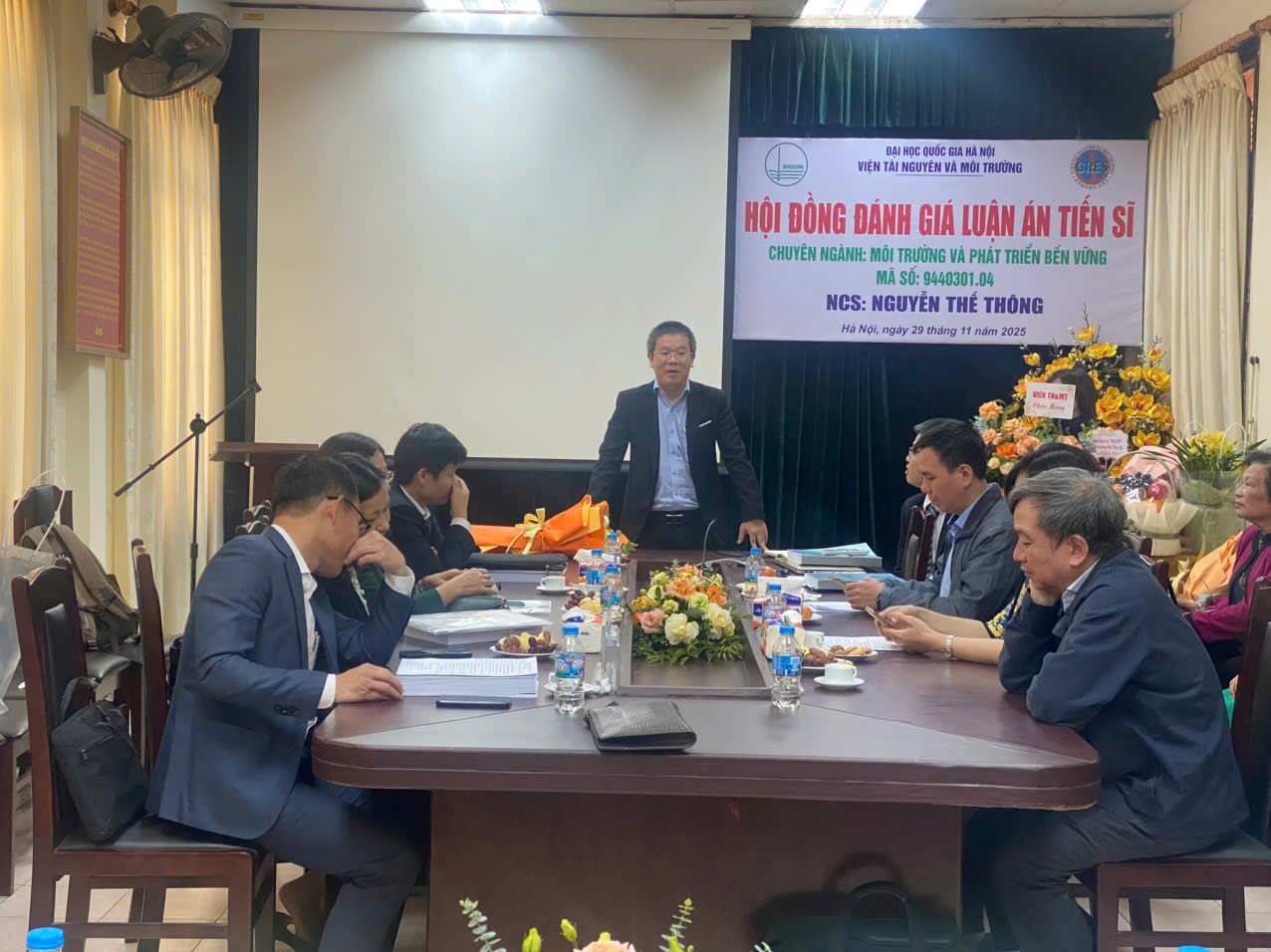 Sau phần trình bày các kết quả chính của NCS Nguyễn Thế Thông, 3 ủy viên phản biện và các thành viên Hội đồng đã cho các ý kiến nhận xét, góp ý cho Luận án. Trong đó, các ý kiến nhận xét đều đánh giá Luận án có tính mới, có ý nghĩa khoa học và thực tiễn. Các kết quả nghiên cứu của luận án có thể cung cấp cơ sở khoa học và thực tiễn cho áp dụng cho khu vực nghiên cứu, đồng thời có thể tham khảo cho các vùng có điều kiện tương tự cũng như có giá trị khoa học để tham khảo trong nghiên cứu và giảng dạy cho chuyên ngành môi trường và phát triển bền vững, quản lý tài nguyên và môi trường.