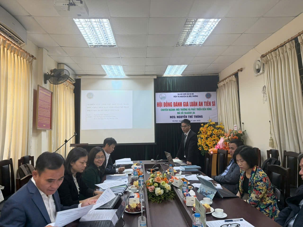 Ngày 29/11/2025, Viện Tài nguyên và Môi trường đã tổ chức họp Hội đồng đánh giá Luận án tiến sĩ cho NCS Nguyễn Thế Thông với đề tài: “Nghiên cứu đánh giá tính phù hợp của công nghệ đốt chất thải rắn sinh hoạt để phát điện tại các đô thị ở Việt Nam”, Chuyên ngành Môi trường và phát triển bền vững, mã số: 9440301.04.