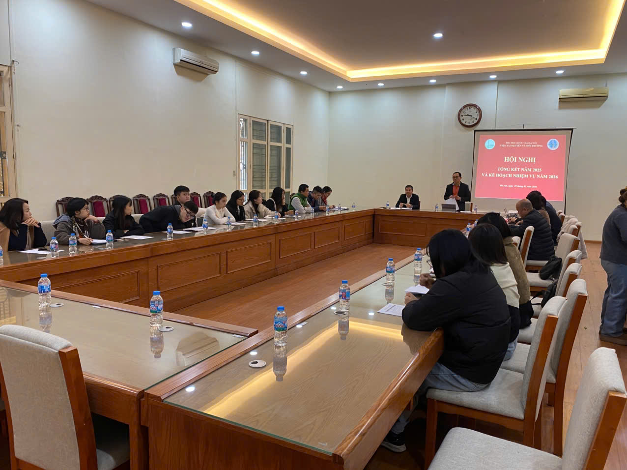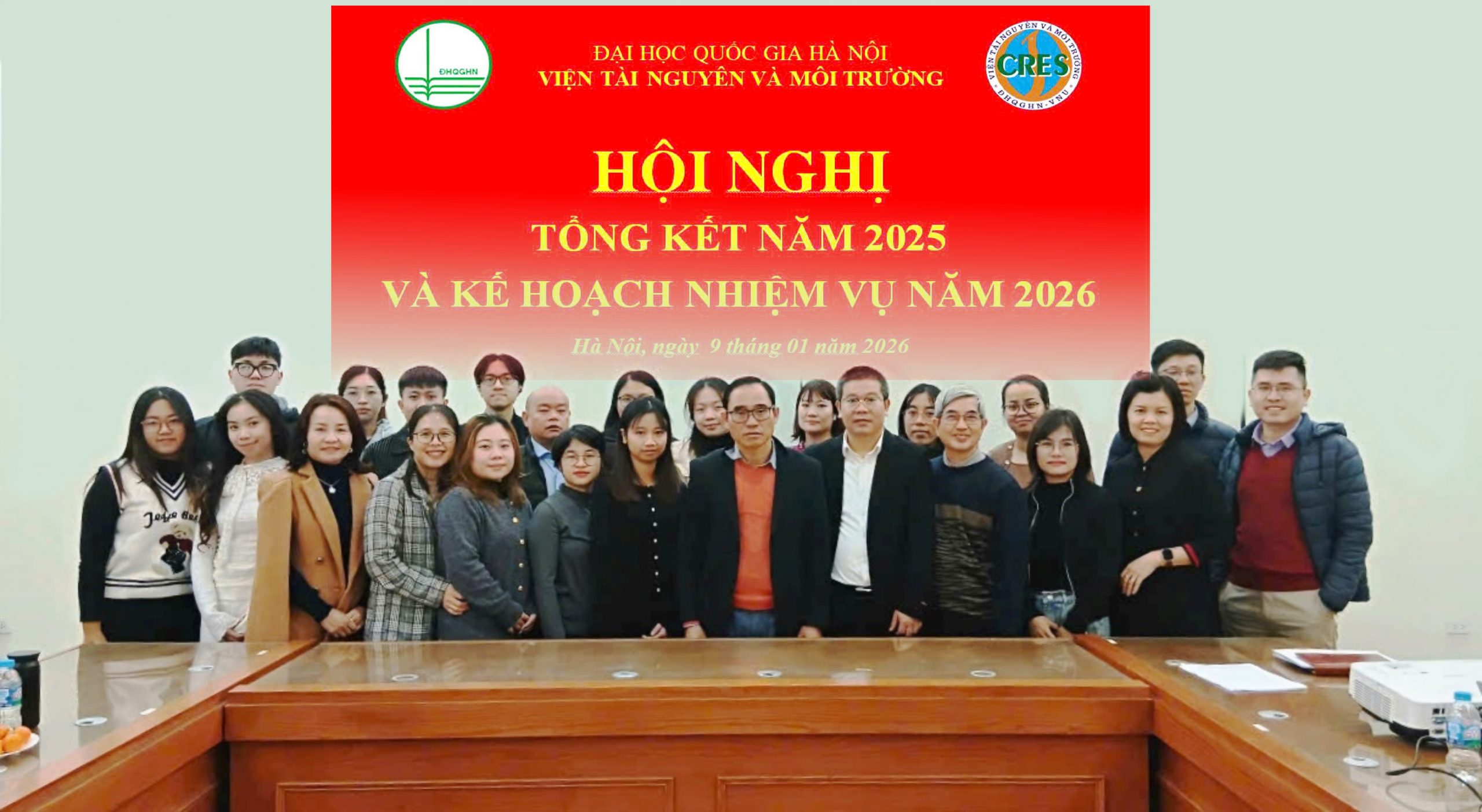 Sáng ngày 9/1/2026, Viện Tài nguyên và Môi trường, Đại học Quốc gia Hà Nội đã tổ chức Hội nghị Viên chức, Người lao động năm 2025. Hội nghị là sự kiện thường niên, có ý nghĩa quan trọng nhằm tổng kết, đánh giá toàn diện kết quả thực hiện nhiệm vụ trong năm 2025 và kế hoạch nhiệm vụ năm 2026. Hội nghị cũng đã phát huy quyền làm chủ, tinh thần trách nhiệm và trí tuệ tập thể của đội ngũ cán bộ, viên chức, người lao động trong việc xây dựng phương hướng phát triển Viện trong giai đoạn tiếp theo.