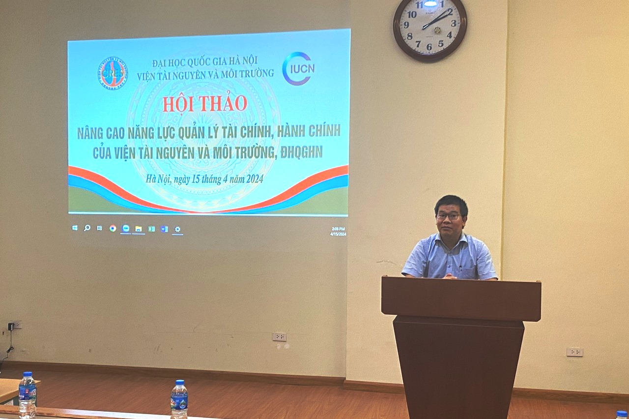 Ngày15/4/2024, Viện Tài nguyên và Môi trường đã tổ chức Hội thảo Nâng cao năng lực quản lý tài chính, hành chính của Viện TN&MT trong khuôn khổ Dự án “Nâng cao năng lực quản lý tài chính, hành chính” được tài trợ bởi Tổ chức Liên minh Bảo tồn Thiên nhiên Quốc tế (IUCN). Hội thảo được tổ chức nhằm chia sẻ những bài học kinh nghiệm và ứng dụng thực tiễn kiến thức quản lý hành chính, tài chính từ các lớp tập huấn trong khuôn khổ dự án tại các tổ chức tự chủ tài chính như Viện TN&MT và tổ chức phi chính phủ.