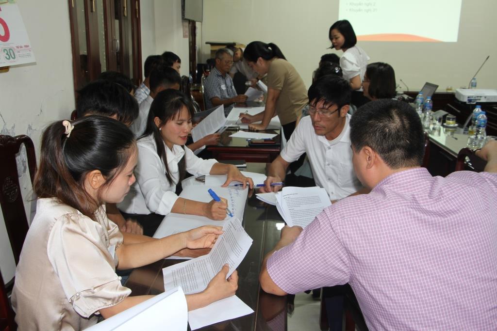 Các đại biểu tại tỉnh Thái Bình đang tham gia thảo luận và đóng góp ý kiến tại hội thảo