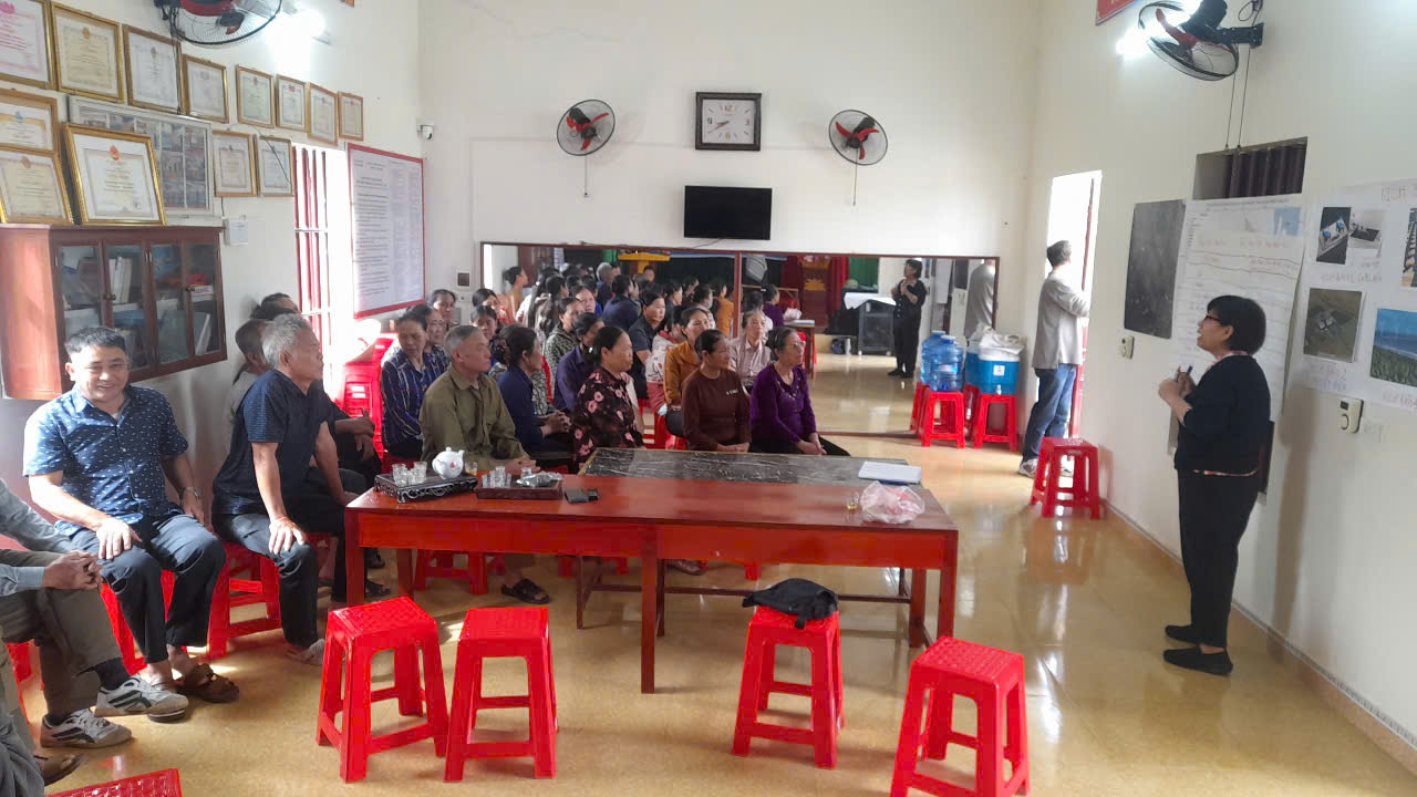Ảnh: Thảo luận nhóm tại cộng đồng về thay đổi trong sử dụng năng lượng, tác động tiềm tàng của 04 kịch bản năng lượng đối với hệ sinh thái và dịch vụ hệ sinh thái địa phương