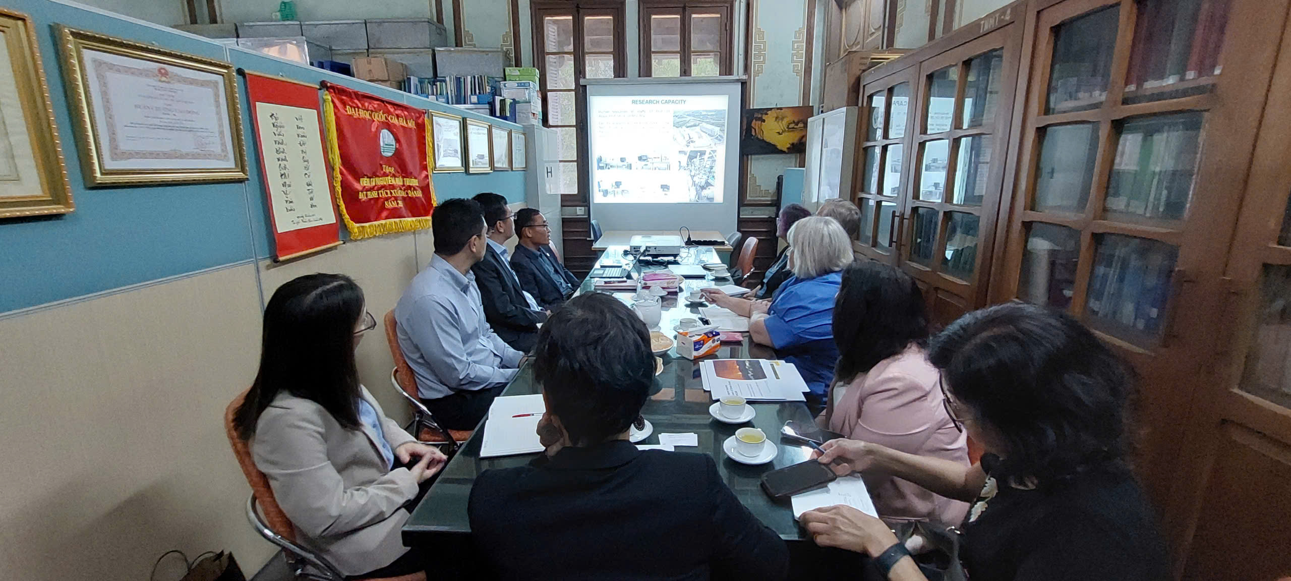 Ngày 27 tháng 10 năm 2025, Viện Trưởng Viện Tài Nguyên và Môi trường, PGS. TS. Lưu Thế Anh cùng cán bộ Viện và GS. Nguyễn Mạnh Khải, Chủ nhiệm Khoa Môi trường, ĐHKHTN, ĐHQGHN đã tiếp đón GS. Giáo sư Janine O’Flynn, Hiệu trưởng Trường ĐH Chính sách công Crawford, Đại học Quốc gia Úc (Crawford School of Public Policy, Australian National University), và các thành viên gồm GS. Shiro Armstrong, PGS. Keith Barney, GS. Sango Mahanty, cùng cán bộ phụ trách tuyển sinh, cựu học viên, và cán bộ truyền thông của Trường Chính sách công Crawford.